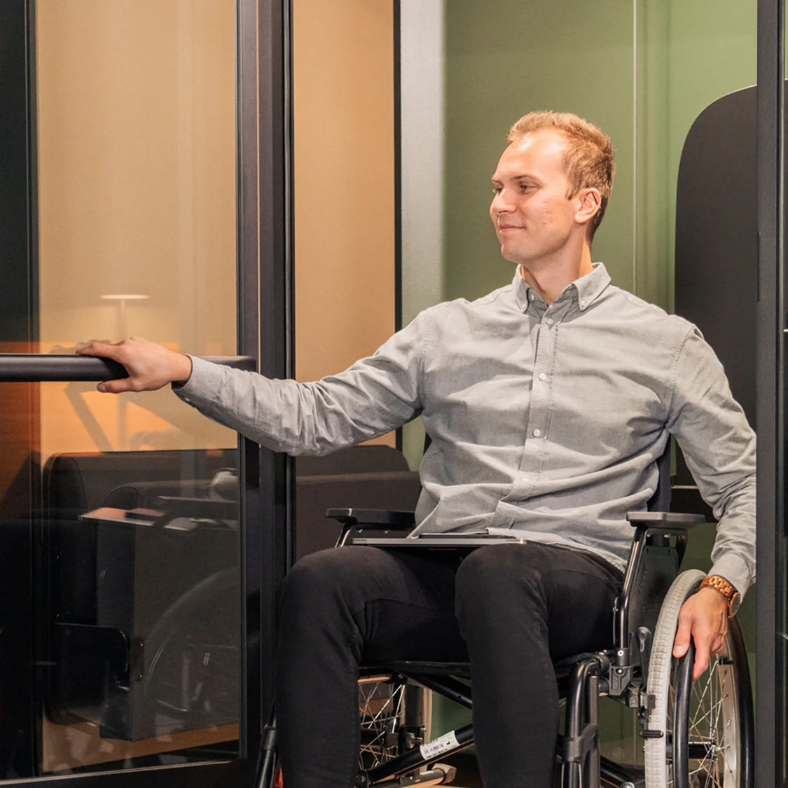 Every detail of the Framery Four Accessible accessible pod has been engineered with the user at the centre of the design process.