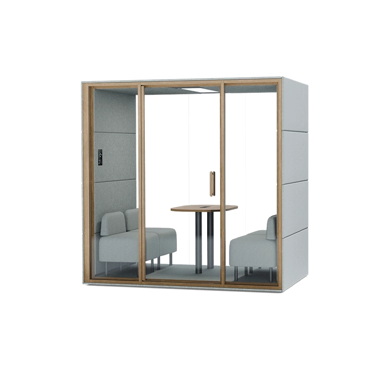 The Chat4 Meeting Pod is expertly designed to meet the demands of modern teamwork, offering a dedicated space for small-group meetings, collaborative discussions, and brainstorming sessions—without distractions or interruptions. Accommodating up to four people, this acoustic pod combines high-performance sound insulation with a refined, comfortable interior, making it the ideal choice for teams seeking focus and privacy in busy work environments.
