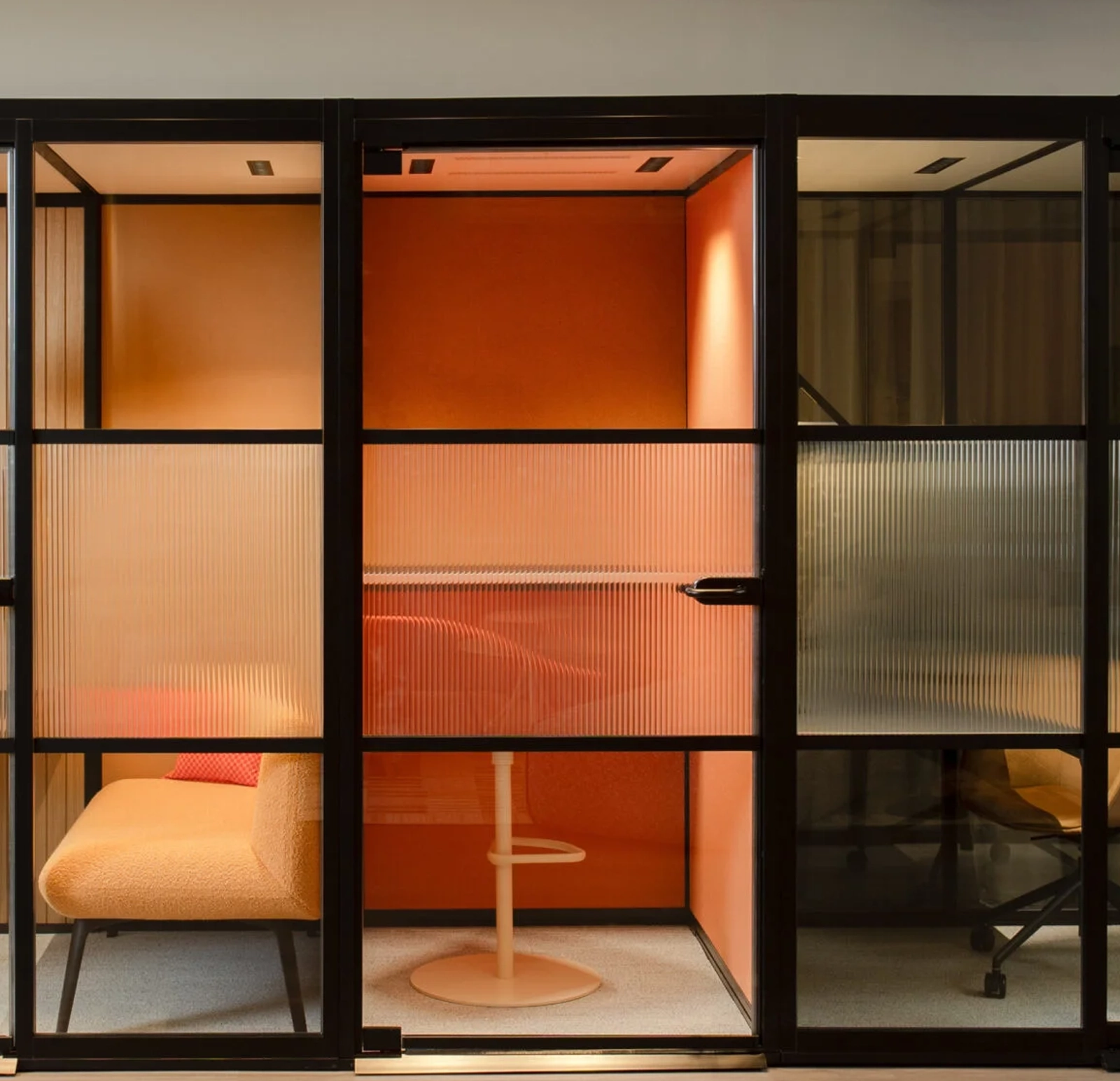 An integrated ventilation system ensures a steady flow of fresh air and maintains a comfortable ambient temperature, even during longer sessions. Whether you’re meeting one-on-one or in a small group, the space is built to promote concentration, comfort, and connection.
