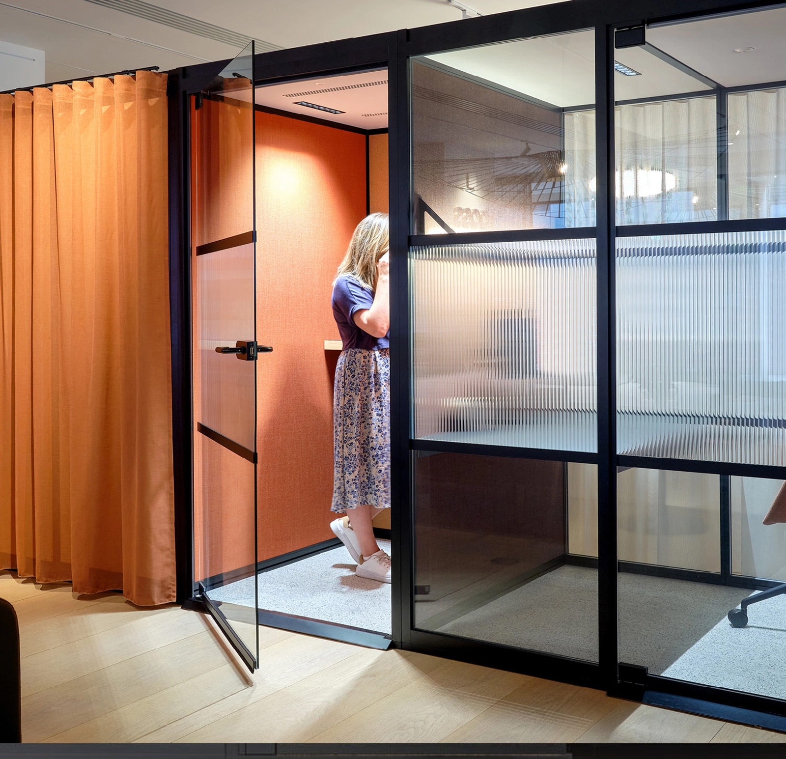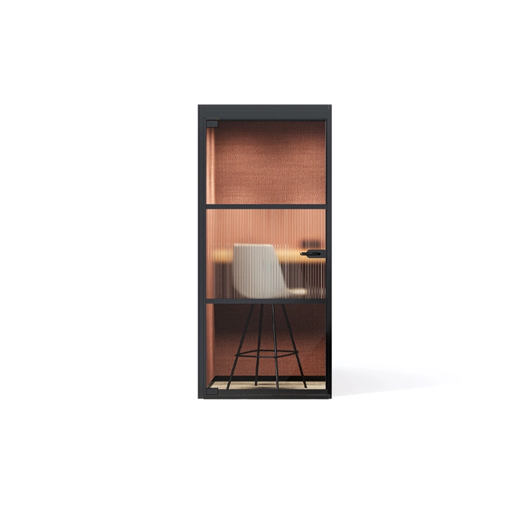 This office phone booth is thoughtfully designed to support both visual and acoustic privacy—providing a calm, enclosed environment where collaboration thrives, conversations remain confidential, and distractions are kept at bay. It is part of the Boss design range that also includes Mews Focus and Mews Connect.