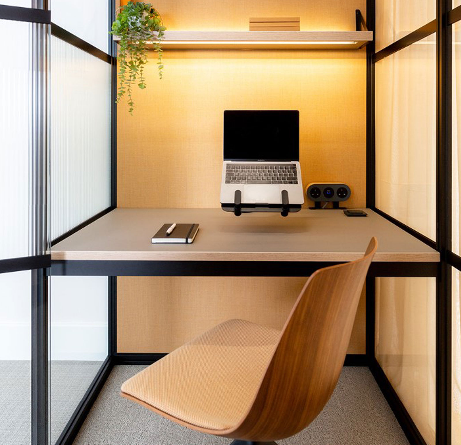 A comfortable workspace requires proper ventilation and air circulation. The Mews Focus Brief includes an integrated airflow unit that maintains fresh air quality temperature and lighting within the pod, reducing fatigue and improving cognitive performance.