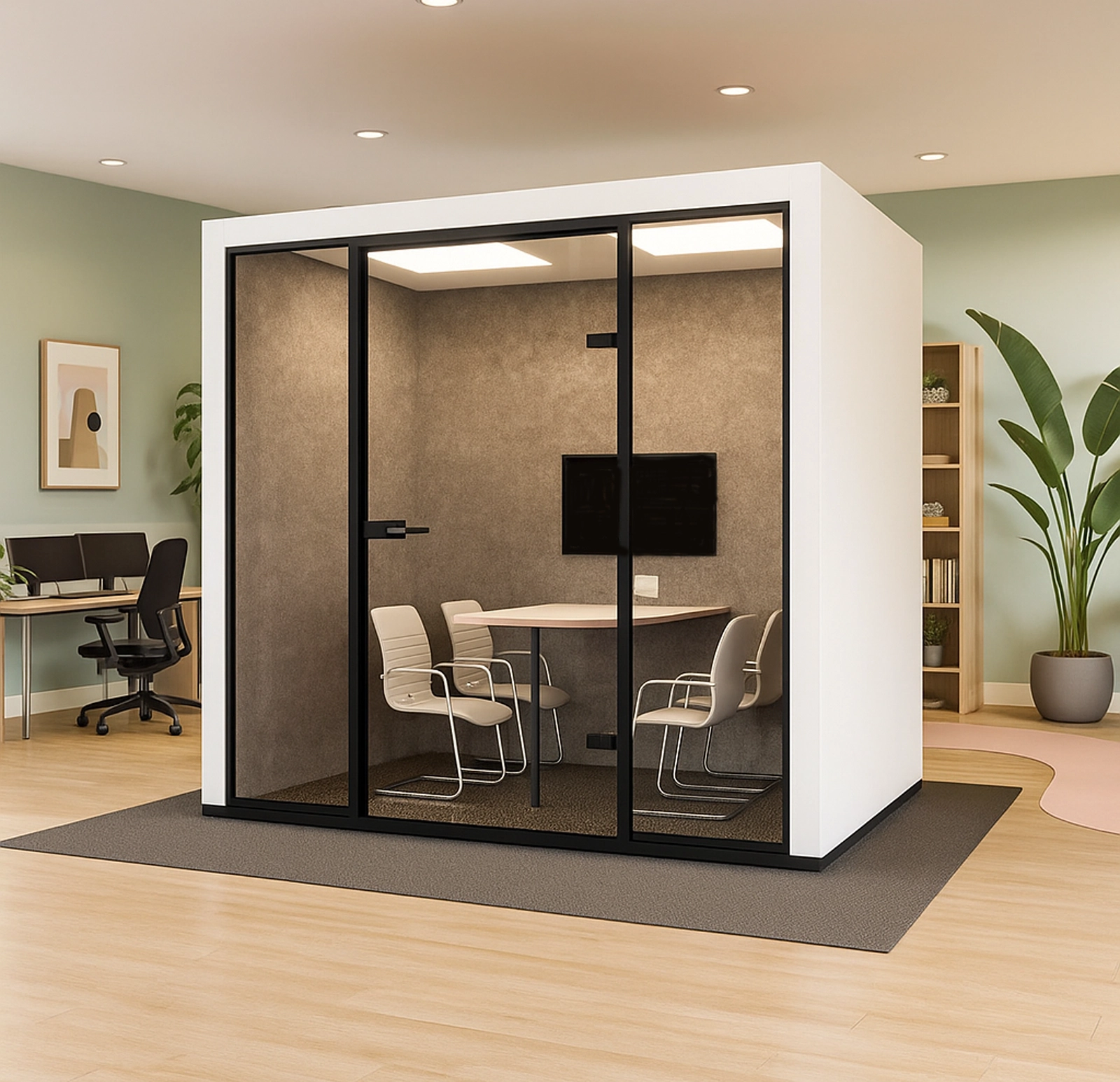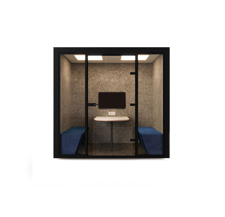Probox Four Pod is a premium four-person meeting pod designed to transform any workspace into a professional, acoustic-friendly conference room, ideal for team collaboration, client meetings, and focused discussions.