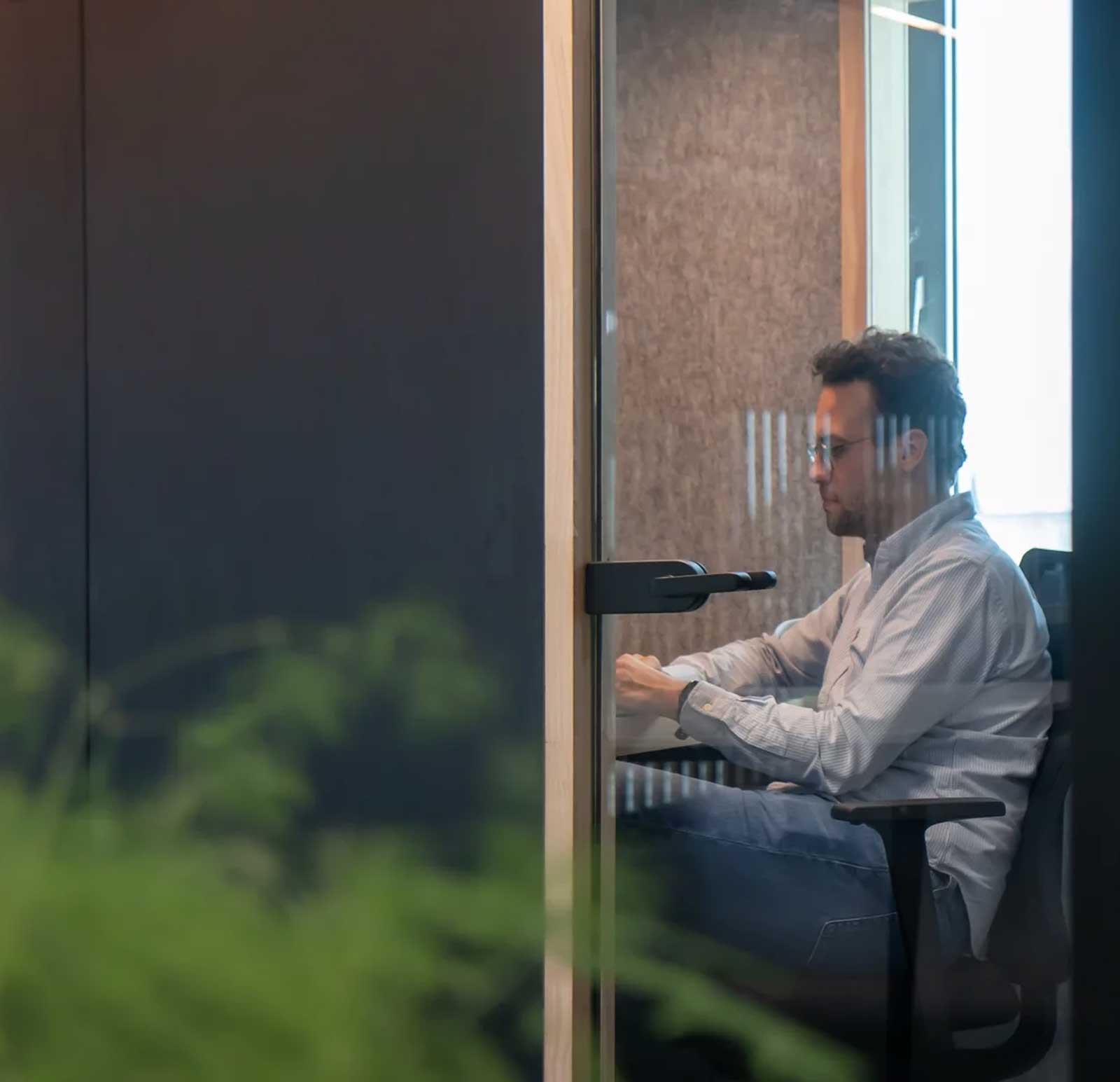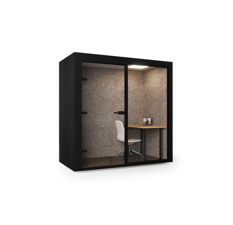 The main design intent provides a quieter setting for solo tasks; if a specific dB or speech‑privacy metric is required, so please discuss this if there is a specific requirement in terms of soundproofing.